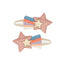Reach for the stars with these beautiful layered star and ribbon clips! In soft pink suedette and gold glitter with brightly coloured grosgrain ribbon trails, these look great clipped in the side of the hair or to decorate an up-do.