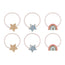 We adore this cheerful little pack of ponies! Two super sweet and sparkly rainbows and four glitter stars in gold and soft pink attached to a neutral, super strong elastics.
