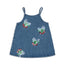 無袖連身裙,採用柔軟牛仔布製成,並配有喇叭裙。