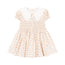 全身亮片裝飾的薄紗洋裝。採用泡泡袖設計,裙子飄逸,移動時搖曳生姿。內襯為柔軟棉布,穿著舒適。